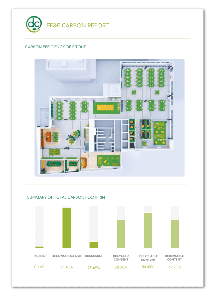 Furniture, Fixtures & Equipment (FF&E) contributes to 30% of a CAT B fitout; and with an average new fitout every 5 years, they can have a higher carbon footprint than the building fabric itself.